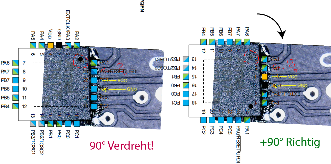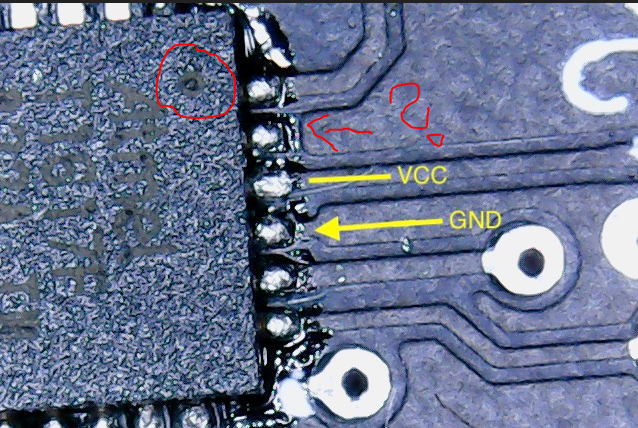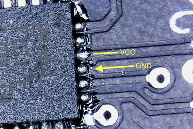 oder VCC. Ich habe mir auch die Lötkontakte des Chips unter dem