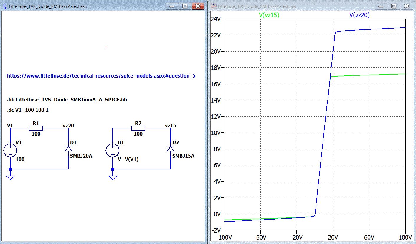 Helmut S. schrieb: > Das sieht mir nach Verschlüsselung mit LTspice aus. Woran erkennst du das? > Häng mal einen Link auf die Modelle von Littelfuse an. Bin ich auch mal gespannt, ich finde dort nur ein Modell zu TVS in SMB, und das ist unverschlüsselt.