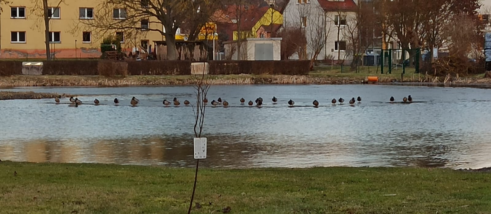 Hier auf dem Bild, der Schwanenteich. Die Schwäne werden nach dem Brüten schon seit Jahren eingefangen und ziehen ihre Jungen in einen geschützten Bereich auf. Hier auf den Teich werden sie ständig gestört. Dafür Gibt es Enten, Reiher usw. Sind das Nilenten, die Jungen sind schon recht groß, aber immer wieder nett anzuschauen. MfG ein 80 jähriger aufmerksamer alter Knacker