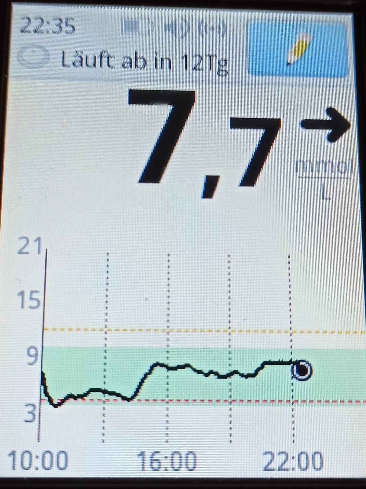 Manfred P. schrieb: > Zeigt das Teil die Werte vom Sensor an oder ist das nur ein Tester für > Streifen? Ich nahm an, dass Libre zwingend ein Handy mit App benötigt? Der Sensor kann mit dem Lesegerät oder Handy App ausgelesen werden. Das Lesegerät kann und soll regelmäßig mit Blutmessstreifen kontrolliert werden. Es wird immer hingewiesen das der Blutzucker den richtigen Wert anzeigt. Das Messgerät zeigt den Gewebezuckerwert an, welche je nach Gegebenheit abweichen kann. Wenn man viele Mängel des Lesegerätes oder der Handy App mit einplant, dann ist es schon wesentlich besser wie direkt den BZ Messen. Bei den Grenzwerten messe ich den Blutzucker direkt mit Messstreifen. MfG ein aufmerksamer alter 80 jähriger Knacker