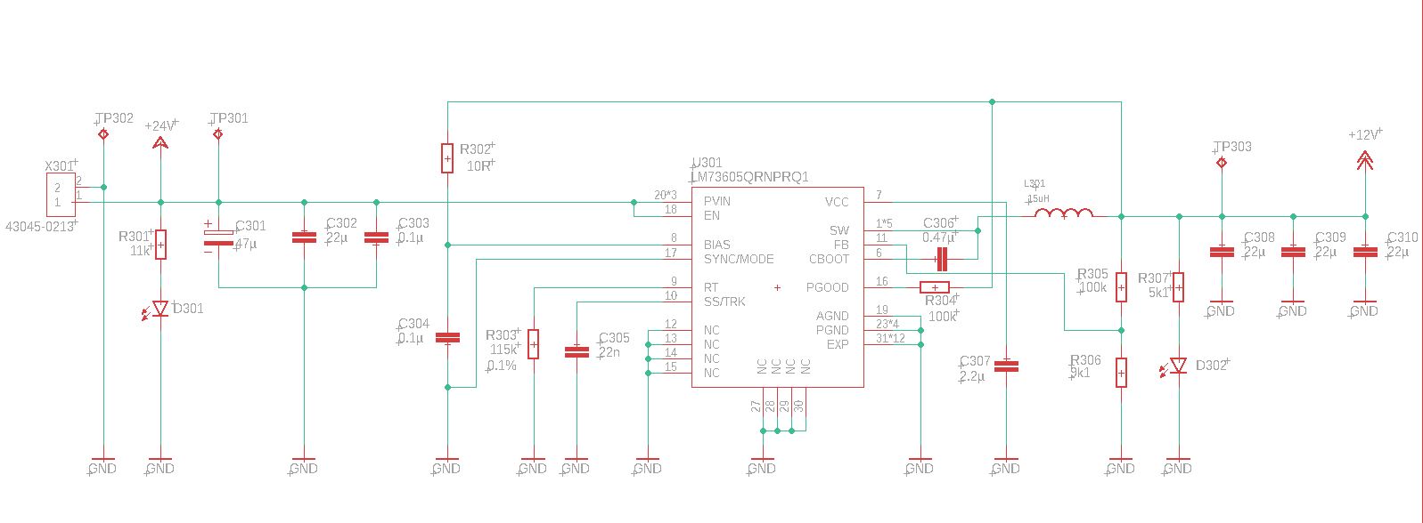 Wie mein Nick bereits vermuten lässt, bin ich nicht der absolute HW-Guru, erinnere mich aber durchaus daran, dass man auf der Eingangsseite eventuell noch eine Filterschaltung (T- oder Pi-Filter) anbringen könnte, um Rückwirkungen auf die Versorgung an X301 zu vermeiden.