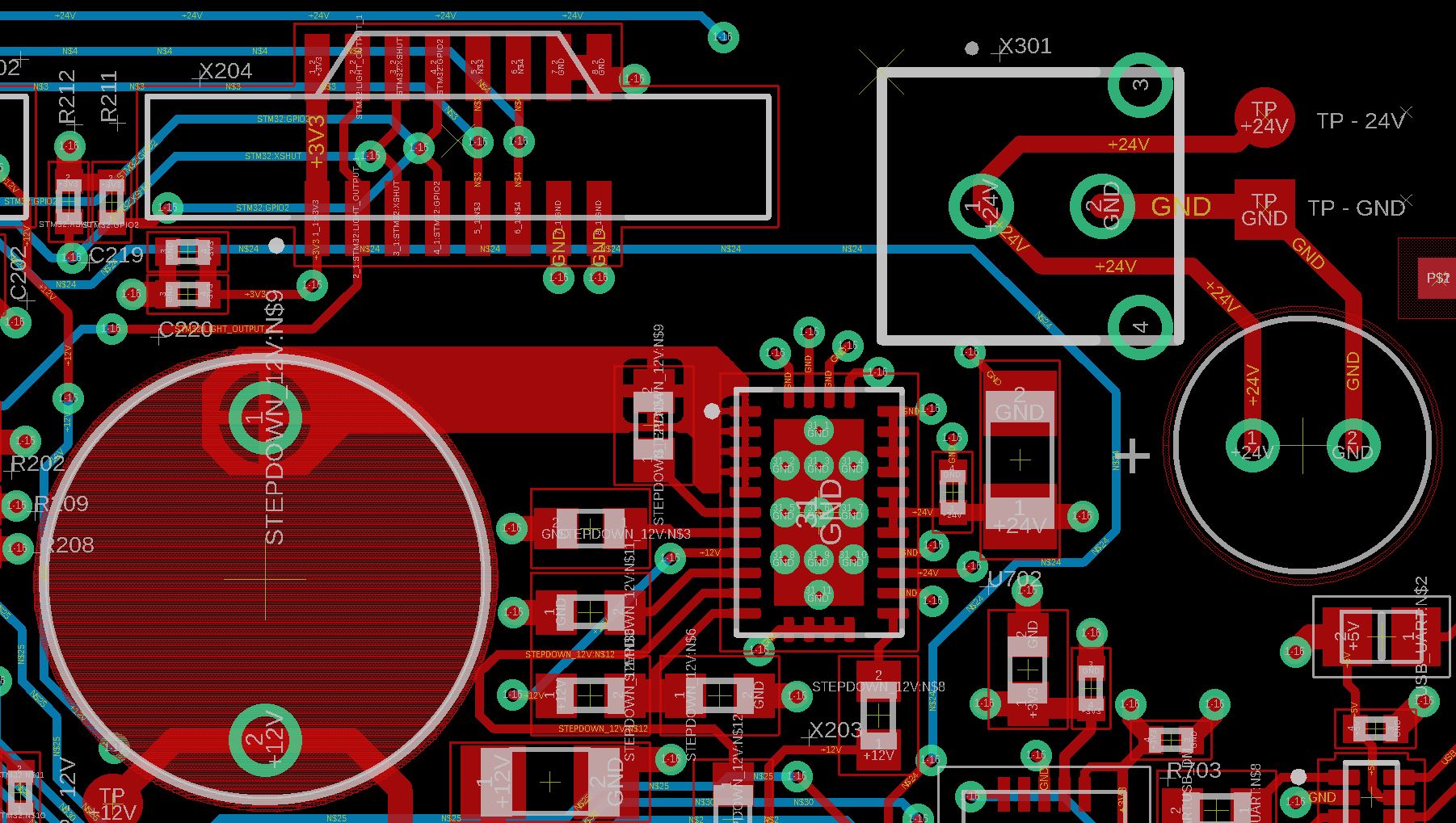 HildeK schrieb: > Wie gut die Schaltung funktioniert hängt dann auch davon ab, wie gut du > das Layout und die Bauteilplatzierung hinbekommst. Im Datenblatt ist > eine Empfehlung drin und auch hier kannst du dir Hinweise holen: > http://www.lothar-miller.de/s9y/categories/40-Layout-Schaltregler Ich kann mein PCB Layout gleich hier reinhängen, wenn ich fertig bin. Leider weicht mein Design vom empfohlenen ab, da ich an Platzmangel auf der Platine leide. Elektronik Laie schrieb: > Wie mein Nick bereits vermuten lässt, bin ich nicht der absolute > HW-Guru, erinnere mich aber durchaus daran, dass man auf der > Eingangsseite eventuell noch eine Filterschaltung (T- oder Pi-Filter) > anbringen könnte, um Rückwirkungen auf die Versorgung an X301 zu > vermeiden. Danke für den Tipp. Die Frage wäre nur, wie man das ganze dimensioniert. Von welchen Werten muss ich ausgehen? MfG