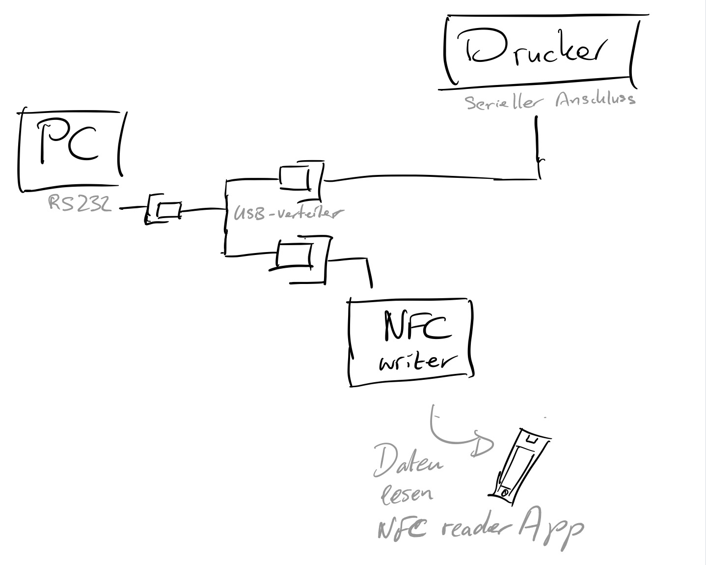 Hier noch die Deutsche Version: Hallo zusammen, ich experimentiere grad und wollte hier in der community nachfragen ob das überhaupt funktioniert was ich mir ausgedacht hatte. ich habe einen alten Windows Rechner und ein Programm darauf. Ich bin da der Anwender vom Programm und habe keinen weiteren Zugriff, das Programm kann am ende ein Dokument drucken und ich möchte diese Daten die es an den Drucker sendet via NFC Lesegerät auf eine Smartphone mit NFC empfangen. Wenn ich den NFC nicht drin habe geht RS232 aus dem Widows Rechner raus und bei dem Drucker ein separater Stromkabel und dann noch von RS232 auf RS232 25 pin Ausgang