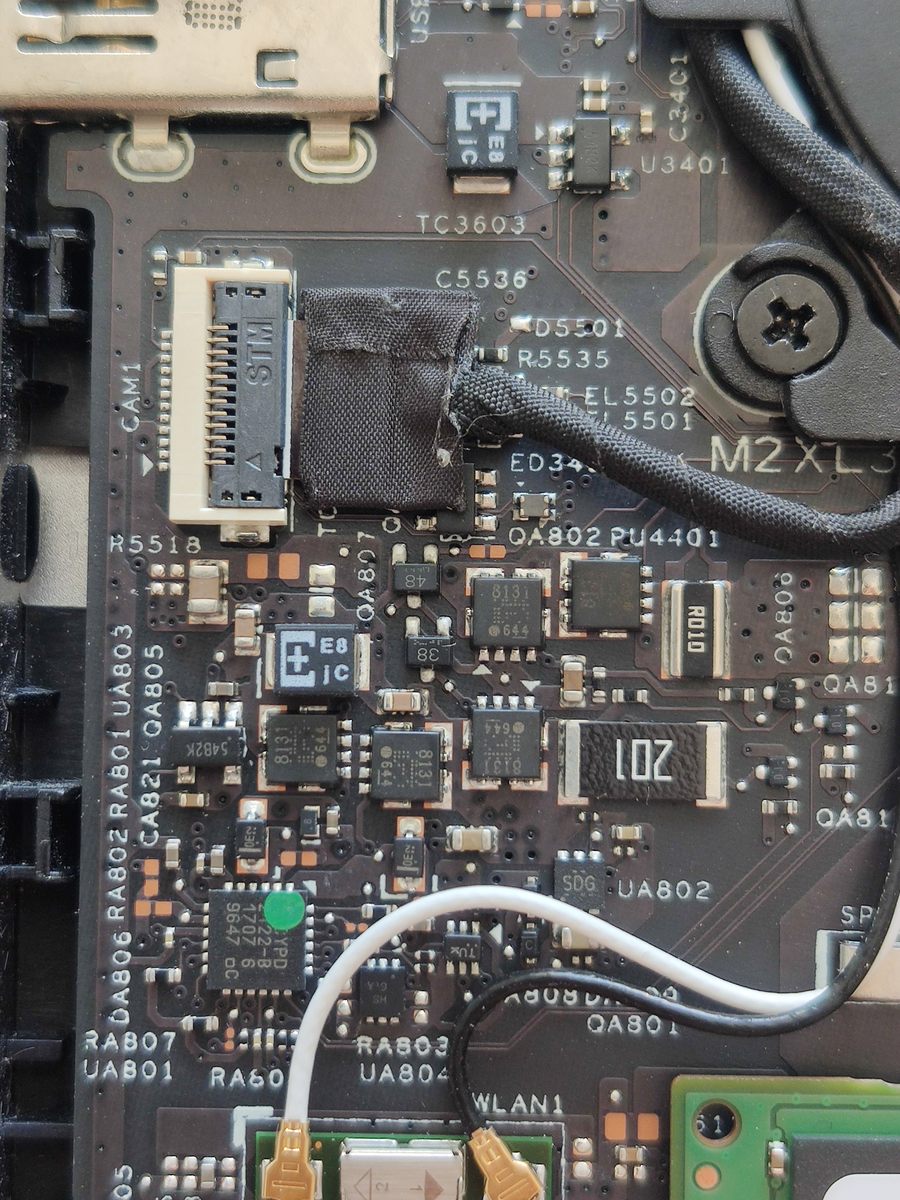 Servus beisammen, Ich besitze ein Xiaomi Air 13 und bin soweit sehr zufrieden. Seit einiger Zeit will er allerdings nicht mehr in den Energiesparmodus gehen, wenn ich den Deckel schließe. Daraufhin erhielt ich den Tipp, dass der "Schalter" scheinbar magnetisch funktioniert (Reed, induktiv) und neben der Kamera sitzt. Ein Test zeigt: Auch die Kamera ist nicht mehr erreichbar! Interessant... Im Gerätemanager ist sie ausgegraut noch drin (Siehe Screenshot) Meine Vermutung: Irgendwie erhält die Platine bei der Webcam keine Versorgung mehr, wodurch sowohl Schalter als auch Cam nicht mehr wollen. Ich habe mal ein Detailfoto und eine Übersicht (Quelle: https://c.mi.com/thread-2092207-1-0.html) angefügt. Vielleicht ist es nur ein Transistor o.ä. der den Geist aufgegeben hat? ... leider finde ich das Modul auch nicht als Ersatzteil oder einen Schaltplan (habt ihr da quellen?!), um mal zu messen, ob da noch Saft drauf ist. Normales USB geht noch. Wäre mega, um das Gerät vor dem Schrott zu retten!!! Danke, VG