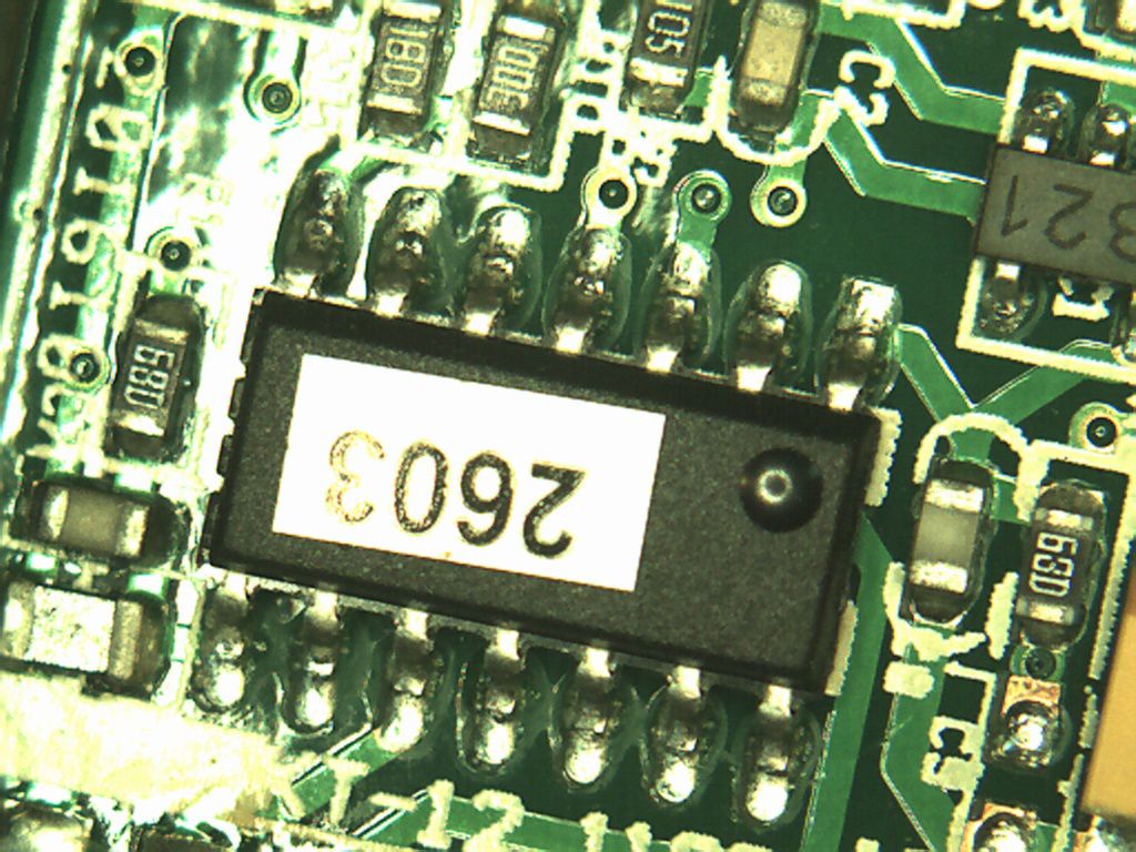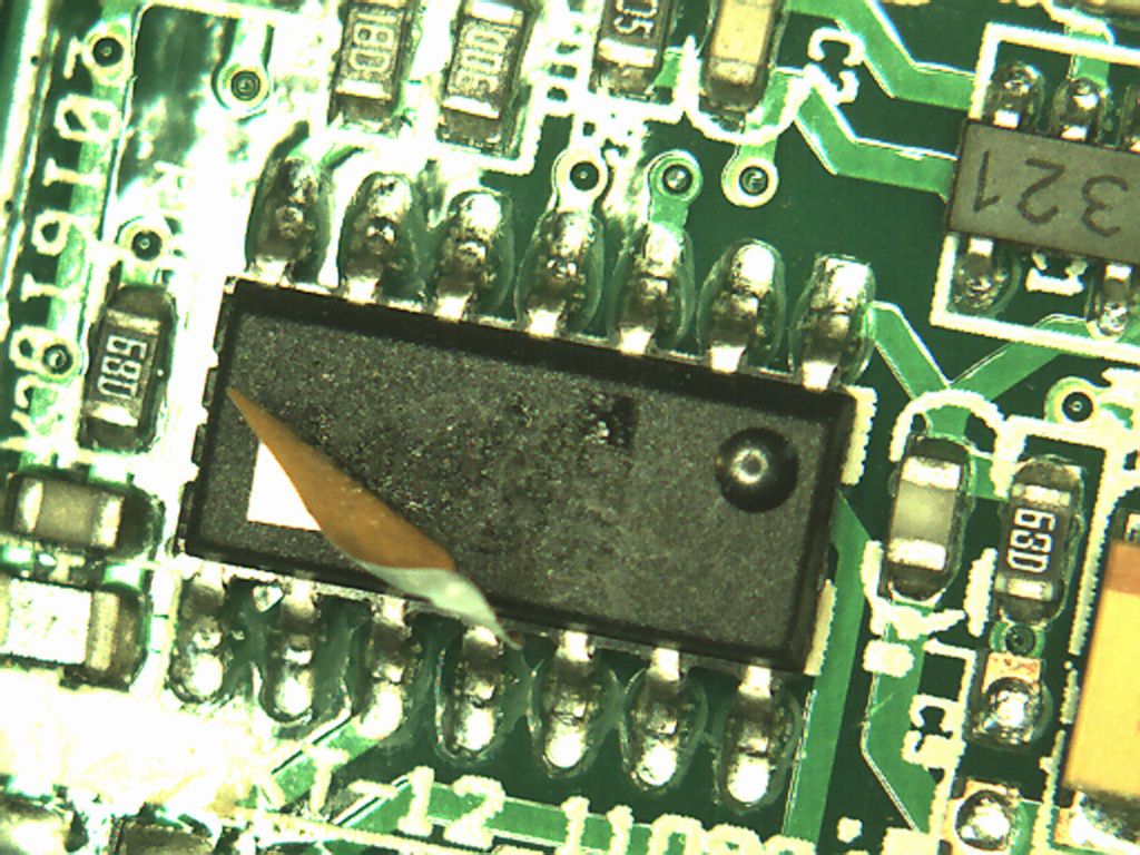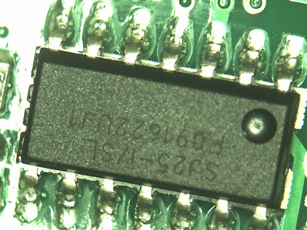 Kannst du noch die Beschriftung des ICs angeben. Auf dem Foto sind Laserbeschriftungen von ICs meist nicht lesbar, so wie hier. Und dann hatte ich ein Gesamtbild der kleinen Platine gemeint.