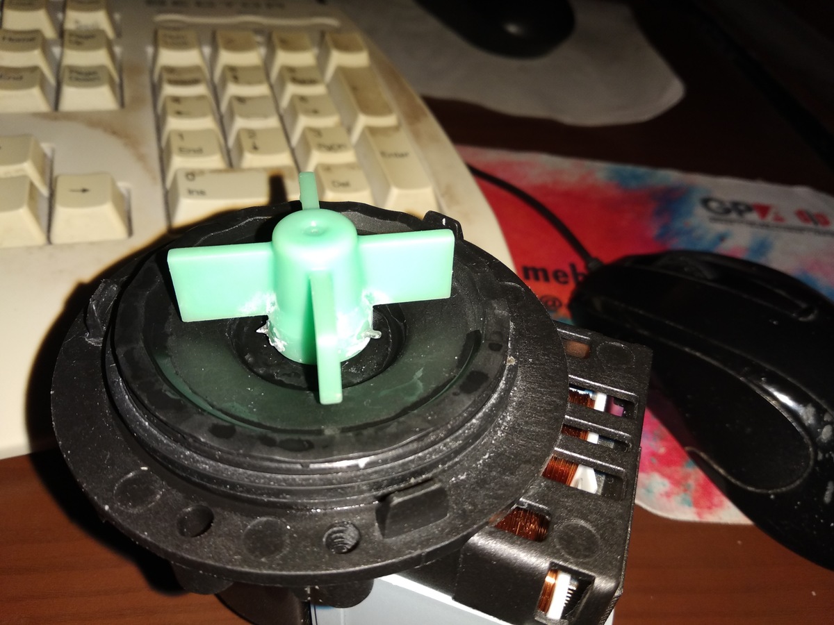 Hi! Heute die Überraschung meiner 13 Jahre alten Elin "A 120 E" Waschmaschine: Beim Versuch abzupumpen, fängt sie an extrem laut zu klappern, als wenn ein Metallstück in der Pumpe sich verfangen hätte. Pumpen konnte es auch nicht mehr. Naja, noch paar Minuten den Kampf beobachtet, und entschieden, das Teil muss aufgeschraubt werden. Gewagt, getan. So, und jetzt hab ich so n komisches Teil in der Hand, was weder Motor noch Spaltmotor sein kann. Lange Google Suche ergibt "Magnetpumpe". Hat einen Permanentmagnet als Rotor, und ein StatorBlechpacket mit 2 Spulenwicklungen. Ansonsten 230Vac und ca 30W Leistung. Das Flügelrad ließ sich ganz leicht abnehmen von der Welle, und da sehe ich, dass das so entworfen war, dass das Flügelrad sich 180 Grad auf der Welle drehen kann, bis diese mitgezogen wird. Jetzt weiß ich, warum da immer so ein Klappern bei dem Anlauf der Pumpe ist. Hab das Teil wieder angesteckt, Festgedrückt, und siehe, es geht wieder. Für einen Waschgang. danach fing das geklappere wieder an. und musste Maschine zum 2. mal auseinandernehmen. Aber, brauchts das mit dem 180 grad Ding überhaupt? könnte man das Flügelrad nicht direkt an die Welle kleben? Wieso macht man sowas kompliziertes da überhaupt? Ist es der Schwung? da sollte man es doch erst recht ankleben... Beim Beschleunigen der Welle hämmert der Zapfen ja extrem stark in das Flügelrad. Ich frag mich, wie stark auch noch mit dem schweren Wasser belastet das dem Flügelrad weh tut jedes mal.
