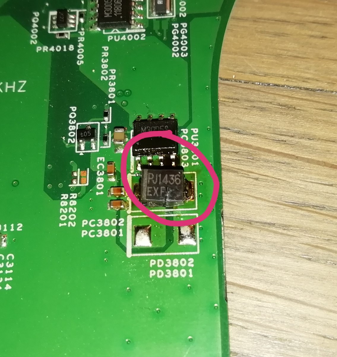Chris S. schrieb: > - PJ1436 EXF Könnte auch EXP heißen. Jedenfalls eine unidirektionale TVS-Diode in SMB, entweder 27V (EXF) oder 39V (EXP).