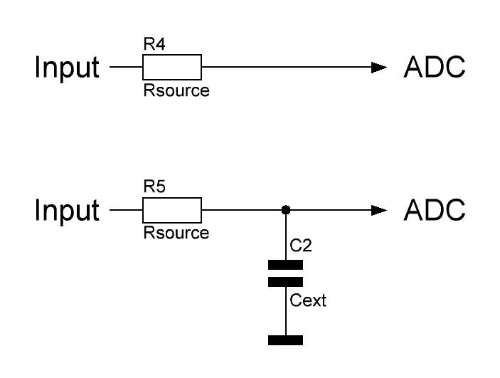 Noch ein Vorschlag schrieb: > Jedem ist klar, ohne Cext darf der Analogverstärker nur einen > Innenwiderstand von wenigen Ohm haben. Ist nicht praktikabel. Diesen > Punkt überspringt die App-Note. Nicht umgekehrt? Ohne Cext kann Rsource einige 100 Ohm betragen. (z.B. STM32 µC) durch das Ranhängen von Cext und im Zuge der Berechnung muss dann Rsource unter 3 Ohm liegen. Was hat man davon?