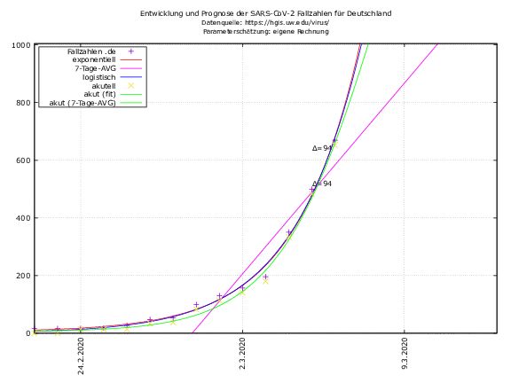 Hallo Nick, Du schriebst: "Man sieht es in "infected.png" bei: Bremen ab dem 4.4. Thüringen und Sachsen-Anhalt ab dem 9.4 Oder ist das nur meine Einbildung?" Dies kann man testen! Das R² für das jeweilige Bundesland einmal mit einer linearen und einmal mit einer exponentiellen Funktion berechnen und dann die Differenz von beiden R² auf Signifikanz testen! Viele Grüße Jürgen