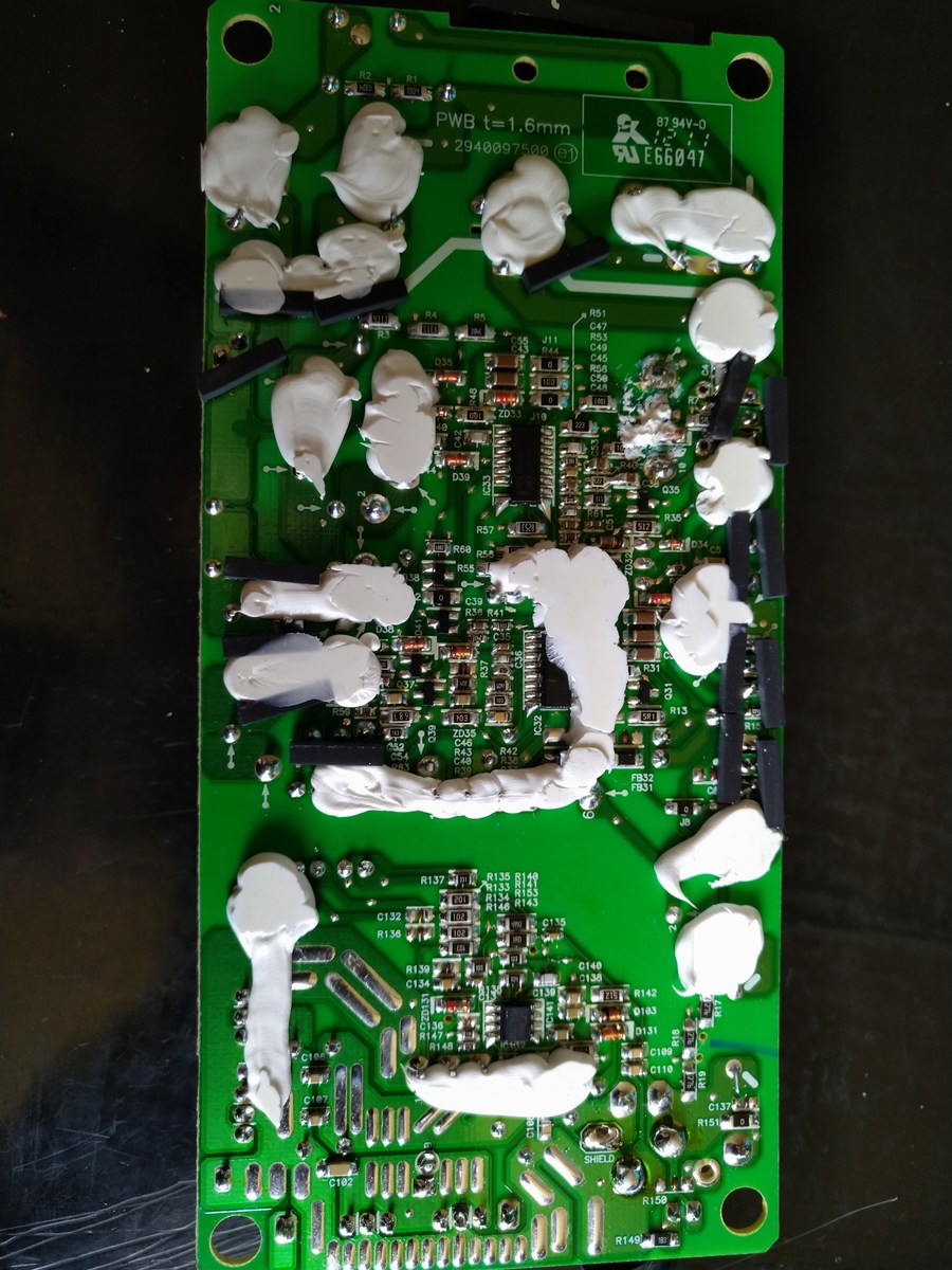 Erst mal danke für den Hinweiss. Der Widerstand sitzt über der rechten Traffospule. Ist leider alles mit sehr viel Kühlpaste versehen, die ich ungerne ab machen möchte.