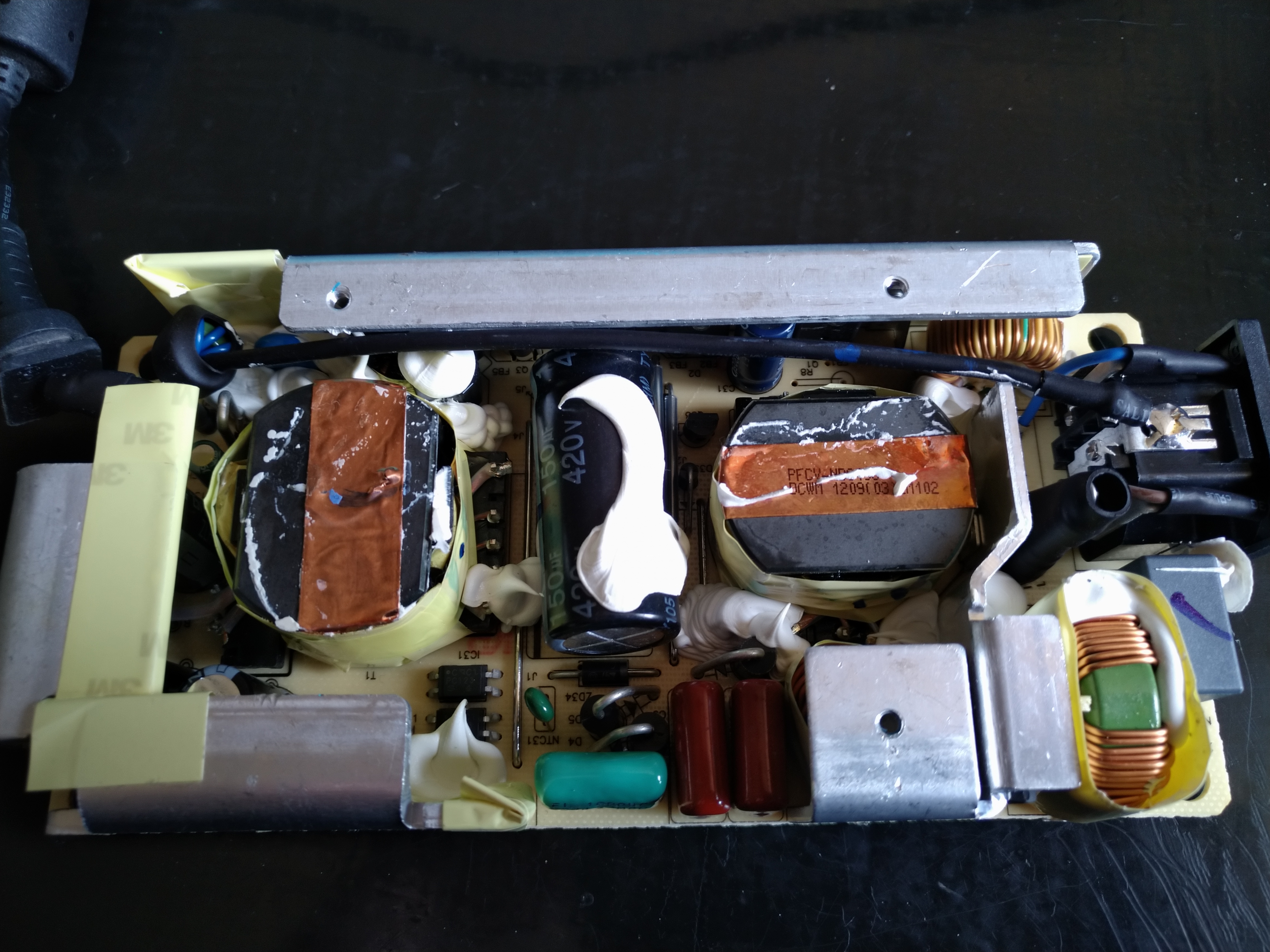 Hallo zusammen, ich suche einen Widerstand für ein Netzteil. Leider kann ich keinen Schaltplan für das Netzteil finden. Habe den defekten Widerstand mal ausgelötet, nur hilft mir das nicht weiter. Das Netzteil ist ein "ADP-180HB D" und es ist der Widerstand R8. Was ich bis jetzt rausgefunden habe ist, dass er wohl 1 Watt +/- 5% haben soll. Aber was ist das für ein Widerstand (wieviel Ohm) und kann ich den gegen einen herkömmlichen Kohleschichtwiderstand tauschen, oder ist das etwas spezielles? Evtl. erkennt ja jemand anhand der Bilder was das ist. Mit messen ist da ja nicht mehr viel möglich. MfG Shurik