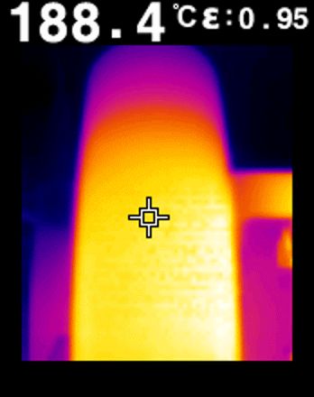 Nachtrag zur Temperatur: Wenn ich eine Glasscheibe zwischen die Röhre und die Wärmebildkamera halte, dann messe ich die Temperatur der Glasscheibe!