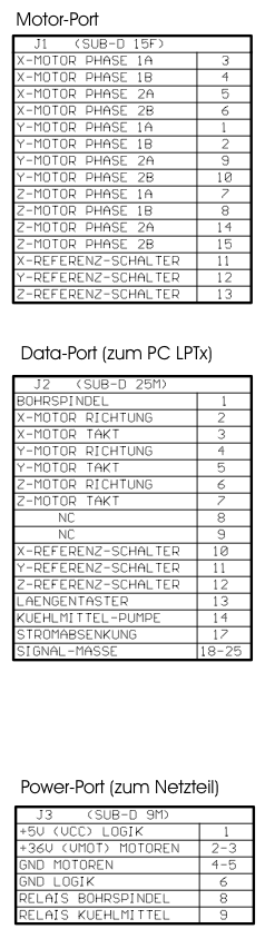 Hallo, ich habe mir heute eine gebrauchte GRV 3000 zugelegt. Leider gab es keinerlei Dokumentation dazu. Hat evtl. jemand von Euch eine solche Fräse und könnte mir damit aushelfen? Ich benötige dringend erst mal den Belegungsplan für den LPT Stecker, an der Fräse, damit ich mit Mach3 oder PCNC etwas probieren kann. Vielen Dank Jürgen Evtl. währe auch hilfreich was für eine Steuerung da drinnen steckt? Halbschritt oder Vollschritt????