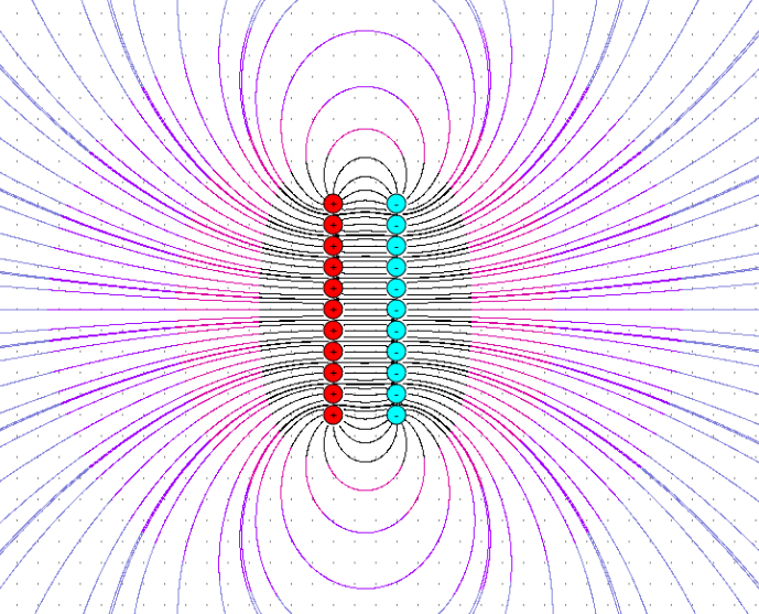 Jap, kalibrieren ist vermutlich sehr wichtig bei sowas. Jetzt habe ich Slots drinnen. Das werde ich auch so fertigen lassen wenn es nicht zu teuer wird. Die Slots habe ich dort gesetzt, wo das Feld seine höchste Dichte hat. Und noch eine Frage: Wie ist das eigentlich wenn man jetzt bei der Platine ganz einfach die obere Lage für den einen und die untere Lage für den anderen Kondensatorpol verwenden würde? Dann hat man ja einen Plattenkondensator gebaut und die Feldlinien gehen durch die Platine. Das ändert sich auch nicht, wenn die Erde nass ist. Aber zusätzlich geht ja auch das Feld aussen herum durch die Erde von Platte zu Platte. Und das geht dann vollständig durch die Erde, Feuchtigkeit hätte also auf dieses Feld dort einen großen Einfluss. Macht das Sinn oder wird in diesem äußeren Feld fast keine Energie gespeichert?