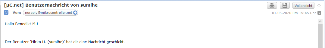 Sinus T. schrieb: > Hallo Mirko, hast ne PN Hallo Sinus, mit Mirko hatte ich heute schon um 15:45 geschrieben und er würde es mir verkaufen. Ich hoffe, dass das für Dich in Ordnung ist. Grüße, Benedikt