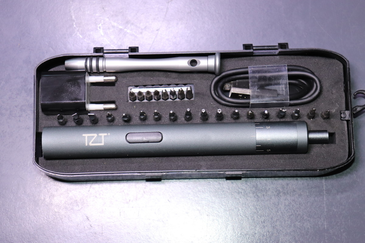 Halli hallo, da ich ihn eigentlich nie benutze, da überzählig und es einfach schade ist, dass die Box hier ungenutzt rumliegt, biete ich einen kompletten Satz Minischraubendreher mit Akku, Netz-Ladegerät, USB-Ladekabel, extra Handgriff und 26 Mini-Biteinsätze in Kunststoffbox. Sehr gut für feinste Arbeiten geeignet durch Drehmomentvorwahl und einwandfrei. Lediglich eines der beiden Scharniere ist halb gebrochen (Bild Scharnier), da die Box mal herunter gefallen ist. Das hat natürlich keinerlei Nachteil für die Funktionalität. So etwas ähnlich gibt es hier zum Vergleich: https://www.ebay.de/itm/dnt-elektronischer-Schraubendreher-SmartPen-PRO-mit-Li-Ion-Akku/202959445021?hash=item2f41535c1d:g:T6sAAOSw4tBecYjx Ich stelle mir faire 30 EUR + Versand nach Wahl vor. Ausgleich per Banküberweisung oder Paypal, wie gewünscht. Tschüss...