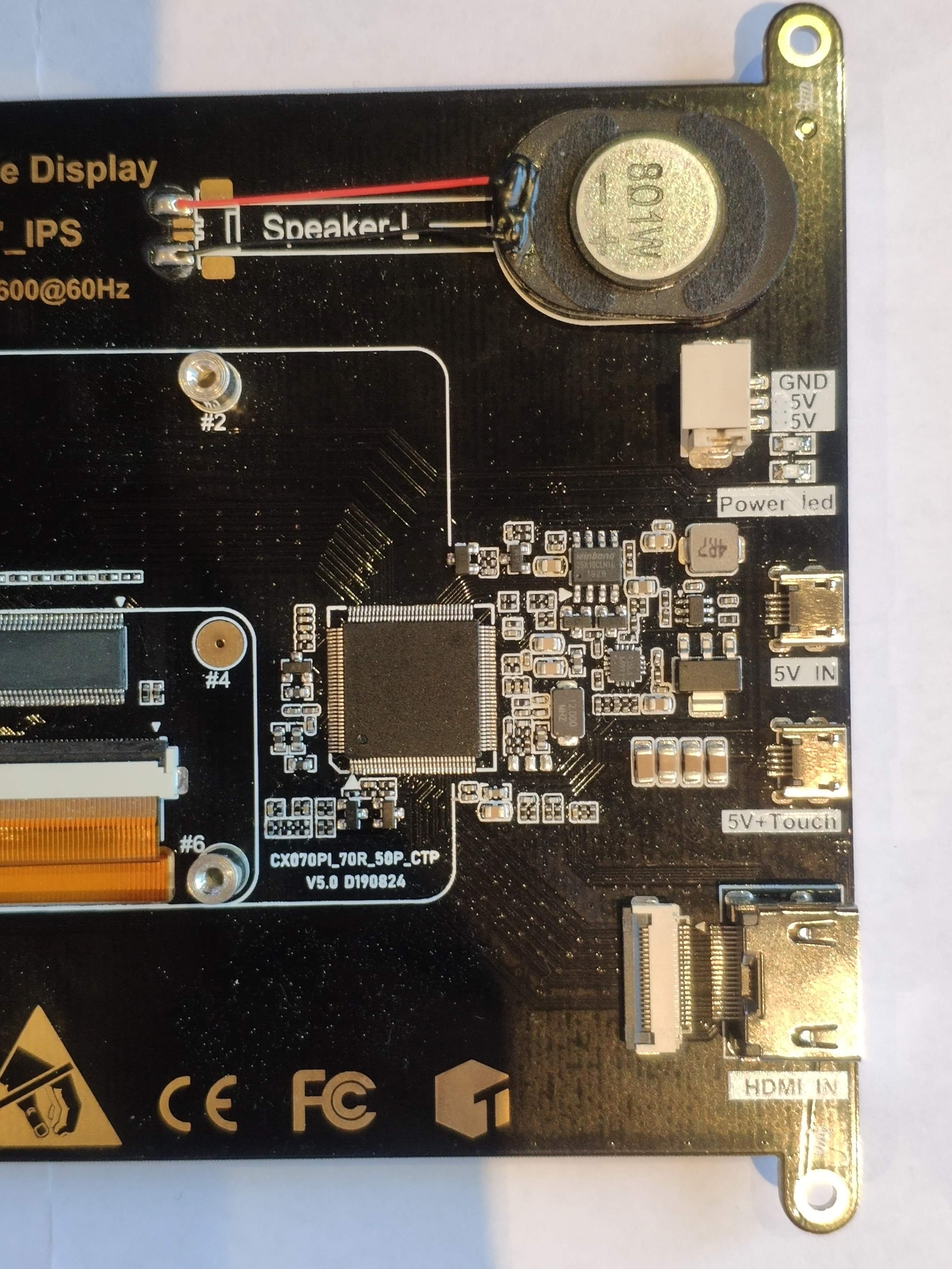 Hallo, bin etwas ratlos. Habe grundlegende Ahnung von Elektronik und kann vieles selbst lösen, aber hier weiß ich nicht genau wo ich anfangen soll. Habe ein "IPS Touch Display" (mit Sicherheit nur LCD) günstig erworben und dachte es ist schnell repariert. Tja.. Etwas übernommen. Nach dem Anschalten verliert es irgendwann an Helligkeit und wird immer dunkler. Hatte erst etwas wie einen Kondensator im Kopf, nur ist keiner verbaut. Auf den IC-Chips findet sich keine Aufschrift. Sie sind blank. Portable Display 7"_IPS 1024x600@60Hz CX070PI_70R_50P_CTP V5.0 D190824