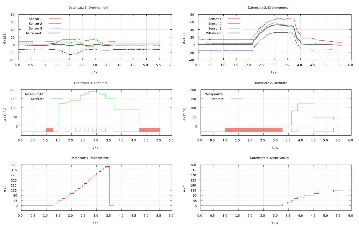 - Die Messwerte für die Drehmomente haben einen mittleren Offset von