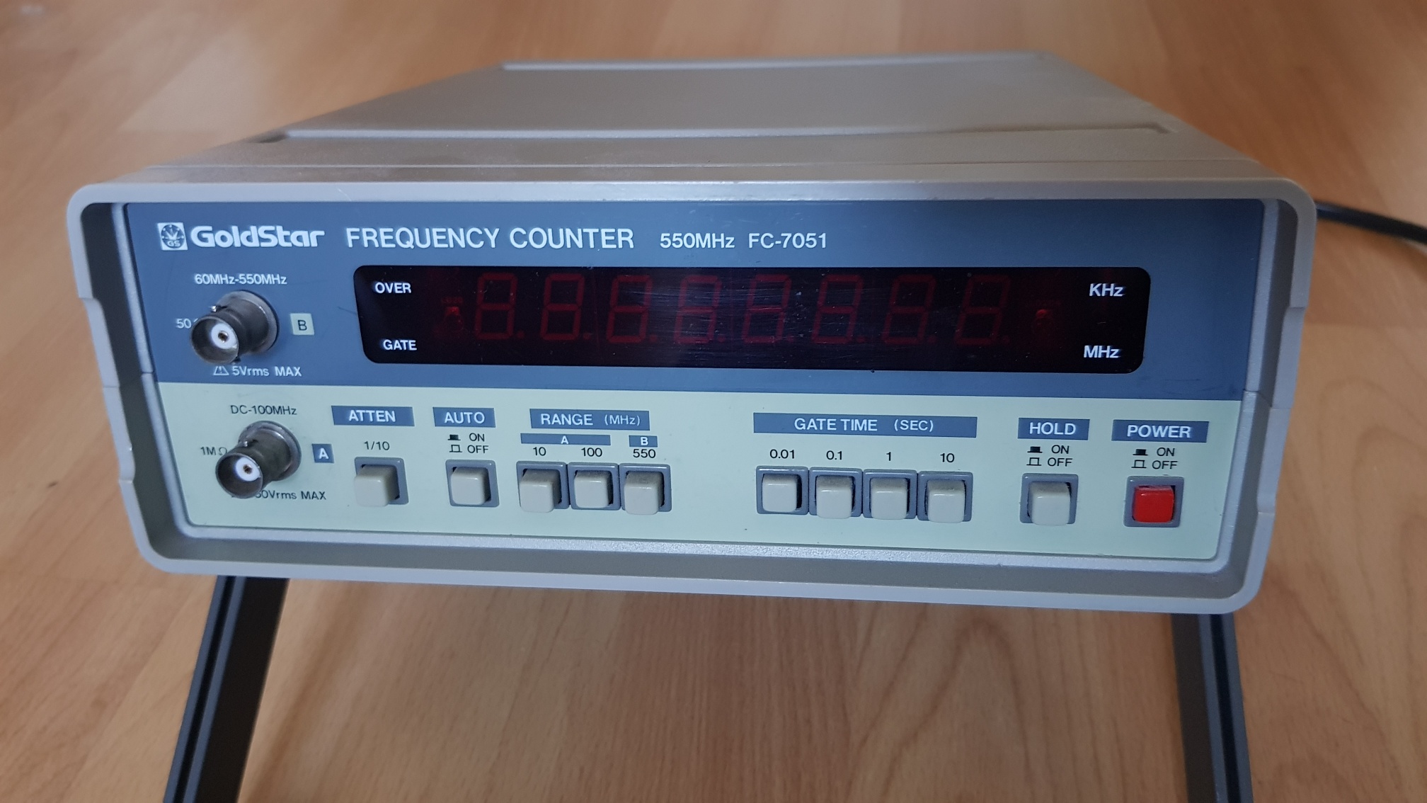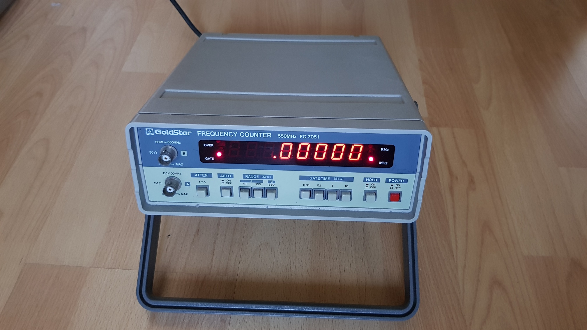 Hallo! Verkaufe einen: GoldStar Frequency Counter FC-7051 Technische Daten: Sychnometro precision bench display 8 digits. Scales: a 1Hz-100MHz, b. 60MHz-550MHz. Analysis precision: 0.1. Gate time: 10S.1S, 100mS-10mV. Sensitivity: 10Hz-60MHz 10MV. CHA: 60MHz-100MHz: 25mV. Operating voltage: 220V AC. Dimensions: 210x260x76mm. Preisvorstellung 80€ + Versand (DHL-Versichert)