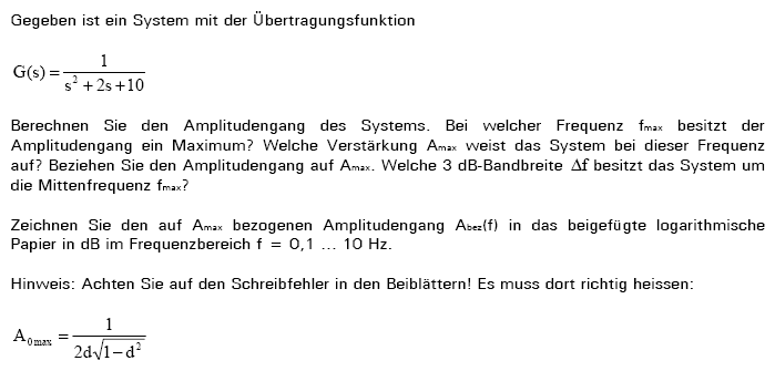 Gegeben ist ein System mit der Übertragungsfunktion