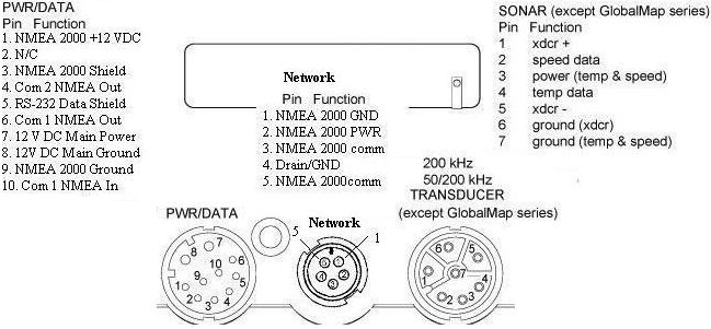 An der Buchse PWR/Data liegen mehrere RS232 Schnittstellen. Eventuell steht in der Doku zum Sonar drin, was da genau rauskommt.