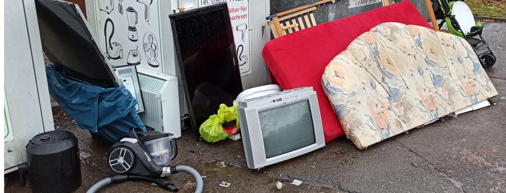 Jetzt wird der Elektronikschrott Container auch noch zur Sperrmüllablage. Obwohl überall z.Z.Sperrmüllhaufen abgeholt werden. Selbst anmelden geht scheinbar nicht. MfG der Alte