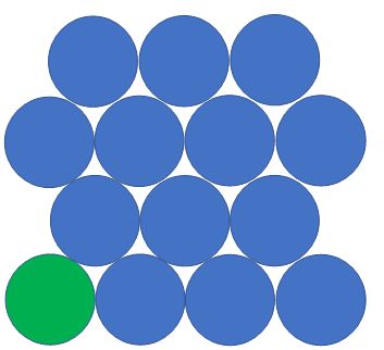 Die bisherige Strategie ist, um die Frage zu beantworten, bis zu den Stossstellen der Kreise zu rechnen und gleich zeitig in einer zweiten Rechnung durch den Durchmesser zu dividieren, was die X-Achse angeht und durch Wurzel (0,75) was Y angeht. Dann gibt es eine Fallunterscheidung. Zum anderen Punkt: Ob in in einer Zelle im Kreis oder ausserhalb, also in den Zwischenräumen bin, kann ich ja leicht bei der Kreisberechnung über den Radius testen. Ich muss nur erst einmal wissen, welchen Mittelpunkt ich nehmen soll.