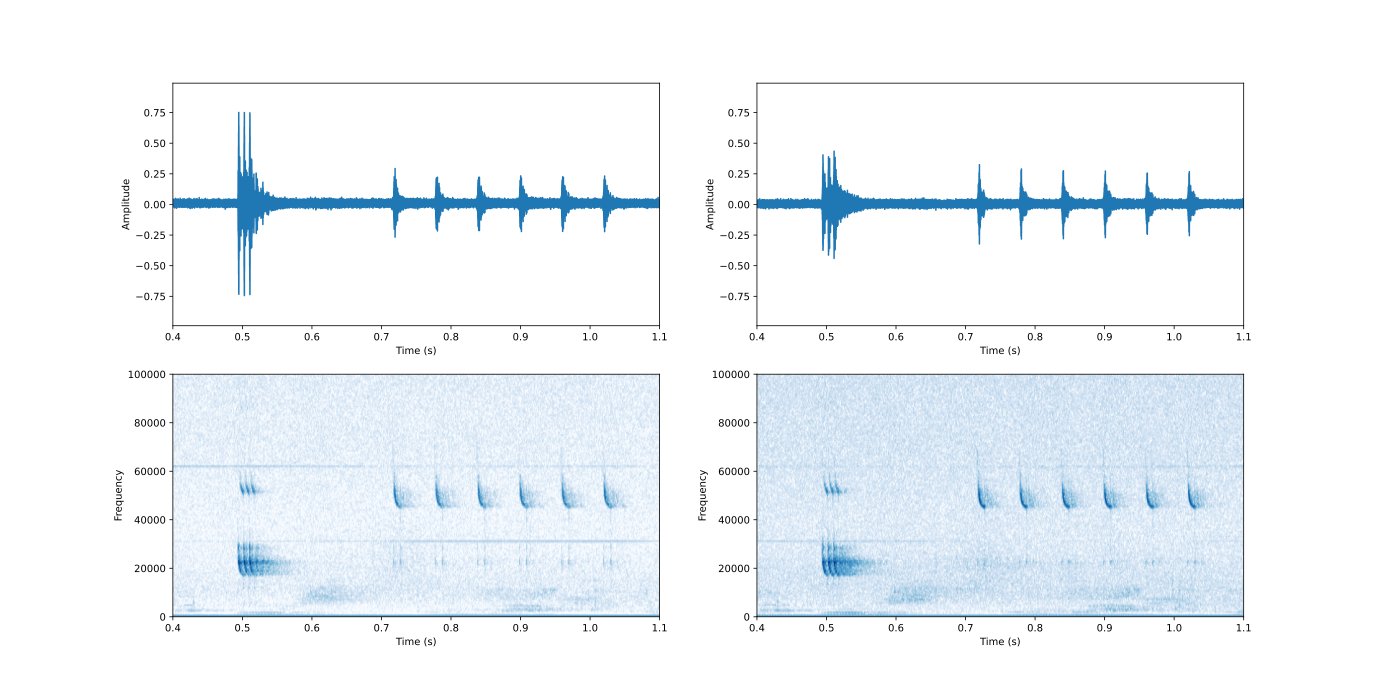 Sheeva P. schrieb: > Jupp, R oder Python mit numpy und Pandas. ;-) Um Spektrogramme automatisiert aus den Roh-Daten zu generieren, hab ich inzwischen mit Matplotlib/numpy was gebastelt, damit kann ich mir schnell einen Überblick verschaffen, welche Aufnahmen für eine weitere Verarbeitung (incl. Zuschneiden) interessant sind. Diese Lösung bietet gegenüber Audacity sogar mehrere Vorteile - so kann ich die Grafiken mit einer inversen Colormap genererieren und direkt im SVG-Format speichern. Die Abbildung oben zeigt eine zweikanalige Aufnahme meiner "künstlichen Fledermaus", daneben war wohl noch ein Schaltnetzteil zu "hören". Sheeva P. schrieb: > ältere Version haben, die auch beim nächsten Update nicht mehr überschrieben wird. Schon klar, bin jetzt wieder zurück auf 2.2.1 (also vorgestern). Mal sehen, wann es wieder eine aktuelle und bedienbare Version gibt.