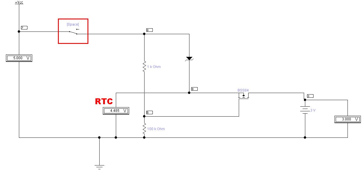 Schon alleine durch die Bodydiode das MOSFET müsste am RTC-Anschluss Spannung anliegen.