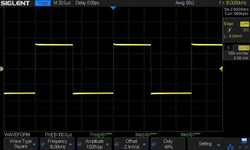 Der Dump eines Rechteck-Signals ist auch im Anhang zu sehen.