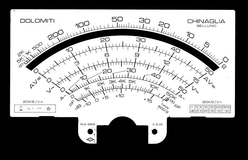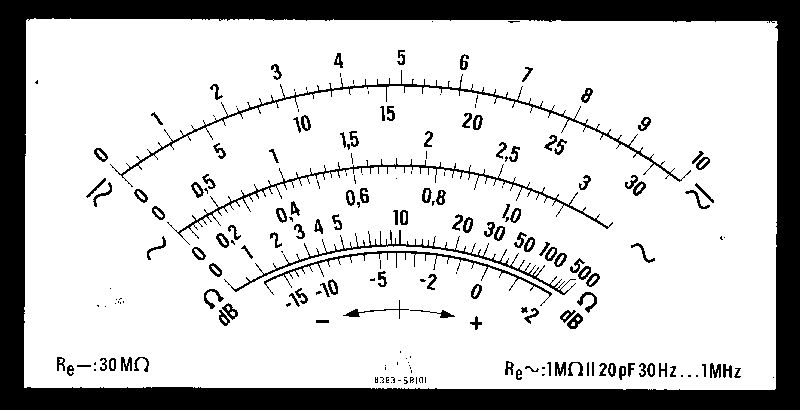 Als "Weihnachts- / Neujahrsgeschenk" die aktuelle Version, es wird... Kann es sein, dass die AC-Skala nur für die 1VAC und 3VAC-Bereiche gilt? Ab 10VAC gilt die DC-Skala, weil der Diodendrop irrelevant wird? Ich lese mir gleich das Handbuch durch, auch wegen der dB-Messung. Anbei auch der Postscript-Code, 200 Zeile High-Density. Jeder darf nach Belieben cr/lf und Spaces als Spices einfügen. Habe wie gewünscht die Skalen "geplättet", das war nicht in ein paar Stunden zu schaffen. Um besser ablesen zu können, ist die Ohm-Skala jetzt oben. Fragen? Wünsche? Gerne. In der Batch-Datei muss ggf. der Pfad zu ghostscript angepasst werden.