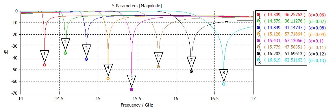Erst mal vielen Dank für die Antwort aber das war mir schon klar. Mein Problem ist, dass sich (vermutlich aufgrund des Mesh) der Wert der Minima bei Veränderung des Frequenzbereichs ändert. Jetzt kann ich daraus keine aussagekräftige Schlussfolgerung ziehen. Daher die Phasencharakteristik. Nur fehlt mir - wie gesagt - hier der Ansatz, wie ich die Bandbreite rausbekomme ...