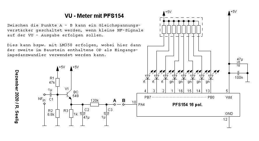 Vorliegendes VU-Meter besitzt 8 LED's zur Anzeige eines analogen