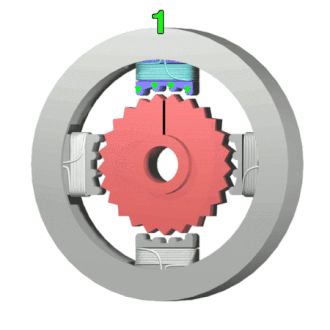 Ein kleines Beispiel (Version1), wie ein Stepper angesteuert und getestet werden kann. Natürlich gibt es wunderschöne, tolle und elegante Schrittmotortreiber, hier einige Vorschläge, bitte keine weiteren Vorschläge unterbreiten: Beitrag "Schrittmotor Stepper Endstufe Treiber Steuerung Schaltung Varianten Ideen Diskussion" Das eine Potentiometer steuert die Winkelschritte (Mikrostepps) von -90...+90 Grad, damit die Geschwindigkeit und die Drehrichtung. Das andere die Wartezeit bis zum nächsten Mikrostep bzw. Vollschritt. Schnell/langsam und große/kleine Mikroschritte. Blitzt die gelbe LED kurz auf, dann erfolgt der Berechnung des neuen Drehfeldwinkels. Bei einem Vielfachen von 90 Grad magnetisches Drehfeld, ist ein Vollschritt erreicht. Mit einer hinterlegten Sinustabelle, 1 Grad Schritten, wird die Sinus- und Cosinus PWM der Ausgänge für das Drehfeld des Stators berechnet. Dami stehen 90 Mikrostepps für einen Vollschritt zur Verfügung. Hätte der Motor 1,8 Grad pro Vollschritt, dann ergibt sich ein Mikroschritt von 0,02 Grad (1,8/90)=1,2 Winkelminuten=72 Winkelsekunden, das erkennt man kaum noch ;-) Der 16-Bit Timer1 sorgt für die Hardware PWM, ohne Rechenzeit zu verschwenden PB1+PB2. Das leichte pfeifen des Motors ist beabsichtigt, damit man wenigsrens etwas hört^^ Kann aber durch Änderung des Vorteilers verschlechtert bzw. verbessert werden. Der Timer0 ersetzt eine Phasenumkehrschaltung PC2, PC3,PC4,PC5, sehr taktintensiv. Nicht wundern, SREG und andere Register werden beim Interruptaufruf nicht gesichert, das sie nicht in der Interrupt-Routine verändert werden. Im Display sehen wir den aktuellen Winkel des Drehfeldes, ist aber nicht die Position des Rotors ;-) Die Mikrosteps in Grad, und die PWM vom Sinus und Cosinus. Da noch einige Pins frei sind, kann dieses Beispiel nach belieben aufgebohrt werden. Die FETs sorgen füür ziemlich viel Strom, 2 Ampere bei 5V sind schnell erreicht, damit der Motor kraftvoll dreht. Für Hinweise und konstruktive Kritik bin ich sehr dankbar. Bernhard
