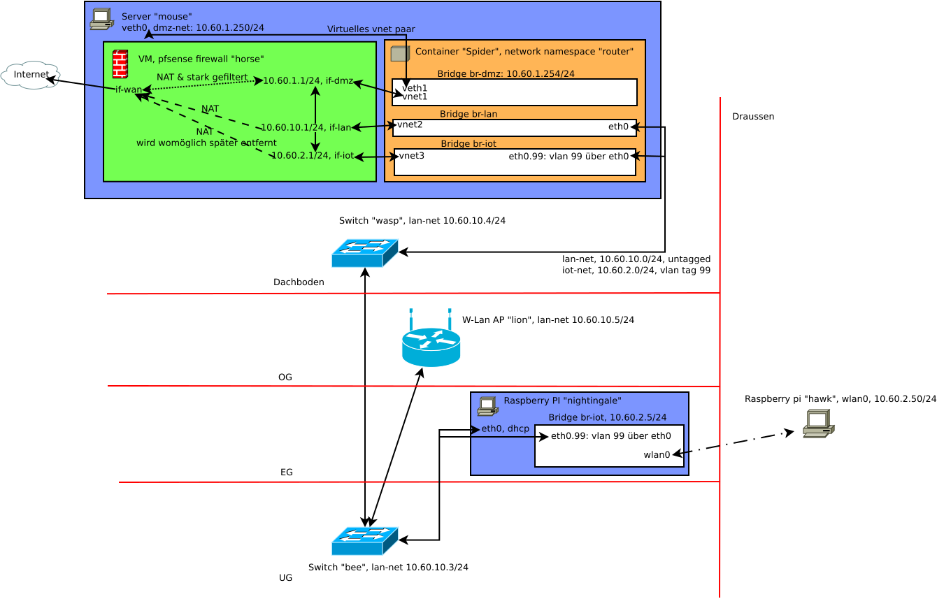 auf dem Dachboden weiter, auf dem in Containern und VMs DNS, DHCP, usw.