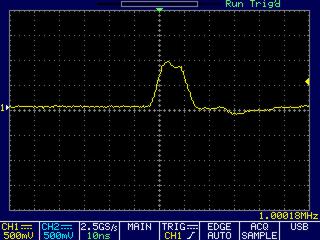 Hallo Volker, grandiose Arbeit. Bevor ich mir Dein Werk zusammen mit einem Kaffee einverleibe, bring ich aber erstmal meine Impedanzanpassung zum Ende. --------- Gestern hatte ich ja per TDR überprüft, ob mit meinem Equipment bis zu den Krokoklemmen alles ok ist. Es fehlt noch die Impedanzanpassung per Krokoklemme. Vier Bilder im Anhang. imp1: beide Oszi-Tastkopfspitzen parallel an dem mit Kabel und Dummy belasteten PLL-Ausgang. Es gibt einen 1.5 ns Versatz, weil die eine Tastkopfzuleitung (durch einen reparierten Kabelbruch) etwas kürzer ist. imp2: gelber Kanal am PLL-Ausgang und blau am Ende des Kabels parallel zum 50-Ohm-Dummy (die zusätzliche Laufzeit entsteht durch die Kabellänge). Exakt dieses Bild (Spannungsverhältnis und Phasenlage) muss auch mit Antenne entstehen, wenn die Antenne als 50-Ohm-Wirkwiderstand arbeitet. imp3: Dummy weg und Antenne ran. Hier hab ich die Klemme zu nah ans Ground geschoben. imp4: hier hab ich die Klemme zu weit weg vom Ground angeklemmt. Bei dieser Einstellung wurde die Antenne stärker belastet und ich musste die Resonanz nachjustieren. Das Optimum liegt zwischen imp3 und imp4 und ist auch genau die Stelle, an der ich gestern die stärkste Abstrahlung feststellte. VG