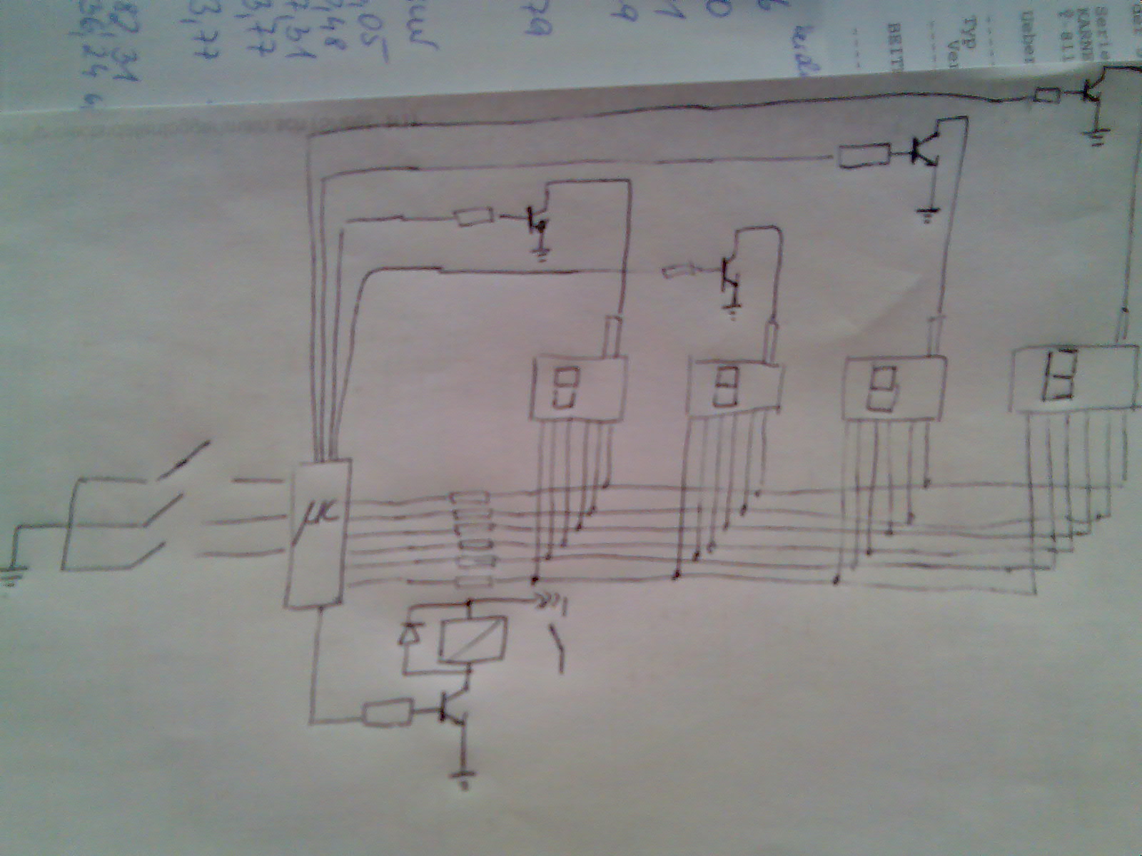 Hallo an alle Ich bau grad einen Timer für ein UV Belichtungsgerät. Die Ansteuerung der 4 Segmente und das Multiplexen funktioniert breits erfolgereich. Jetzt bin ich beid er Implemantation der Tastereingabe. Jedoch habe ich ein Problem :( Wenn ich einen der 3 Taster drücke, erhalte ich Störungen auf allen der 4 Anzeigen aber immer bei einem Segment und das bei allen 4 gleichzeitig :( Diese Segmente schalten sich aus. Und manchmal schalten sich nicht alle 4 aus sondern nur 3. Dafür leuchtet das 4. stärker als alle anderen normal.... Was kann denn da los sein??? Ich hab eicht keinen plan mehr..... Ich hoffe es kann mir wer helfen :) Gruß Robert