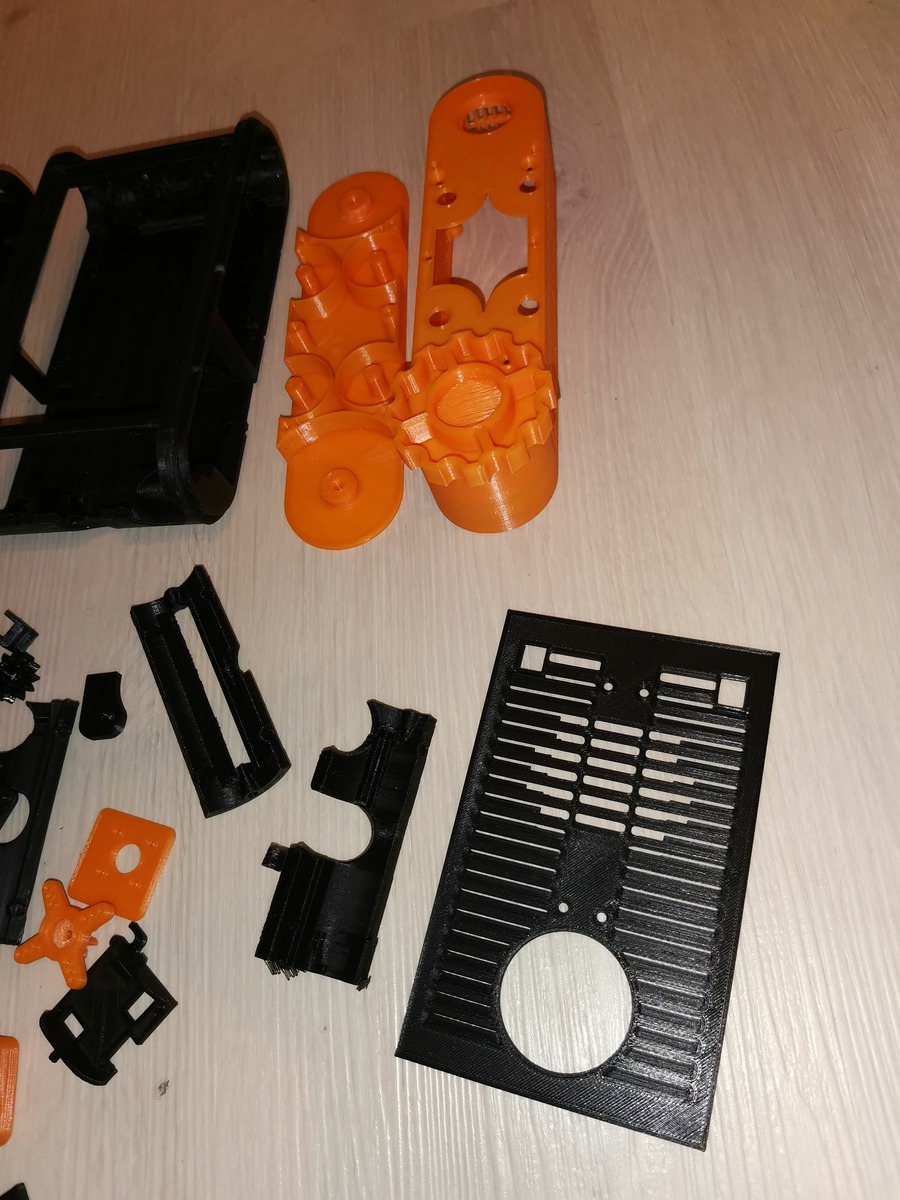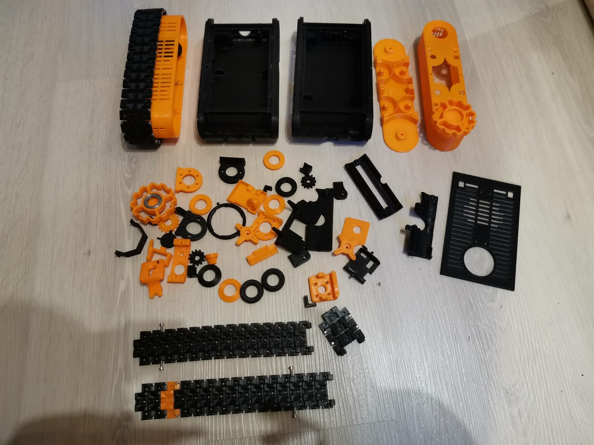 Wollte mal den FPV Rover hier bauen: https://www.thingiverse.com/thing:2952852 Hab alle Teile dafür gedruckt, aber irgendwie keine Lust mehr gehabt. Ein Antrieb ist schon komplett zusammengebaut (Mit Lager, und allen Schrauben in der Kette). Da war auch schon zum Testen ein Motor von einem RC-Car drin, und der Antrieb läuft. Ist auf Grund der Druckzeit zu Schade zum Einstauben oder Wegschmeißen. Wenn es jemand haben möchte, 20€ mit Versand (Materialkosten sind schon mehr als 20€).