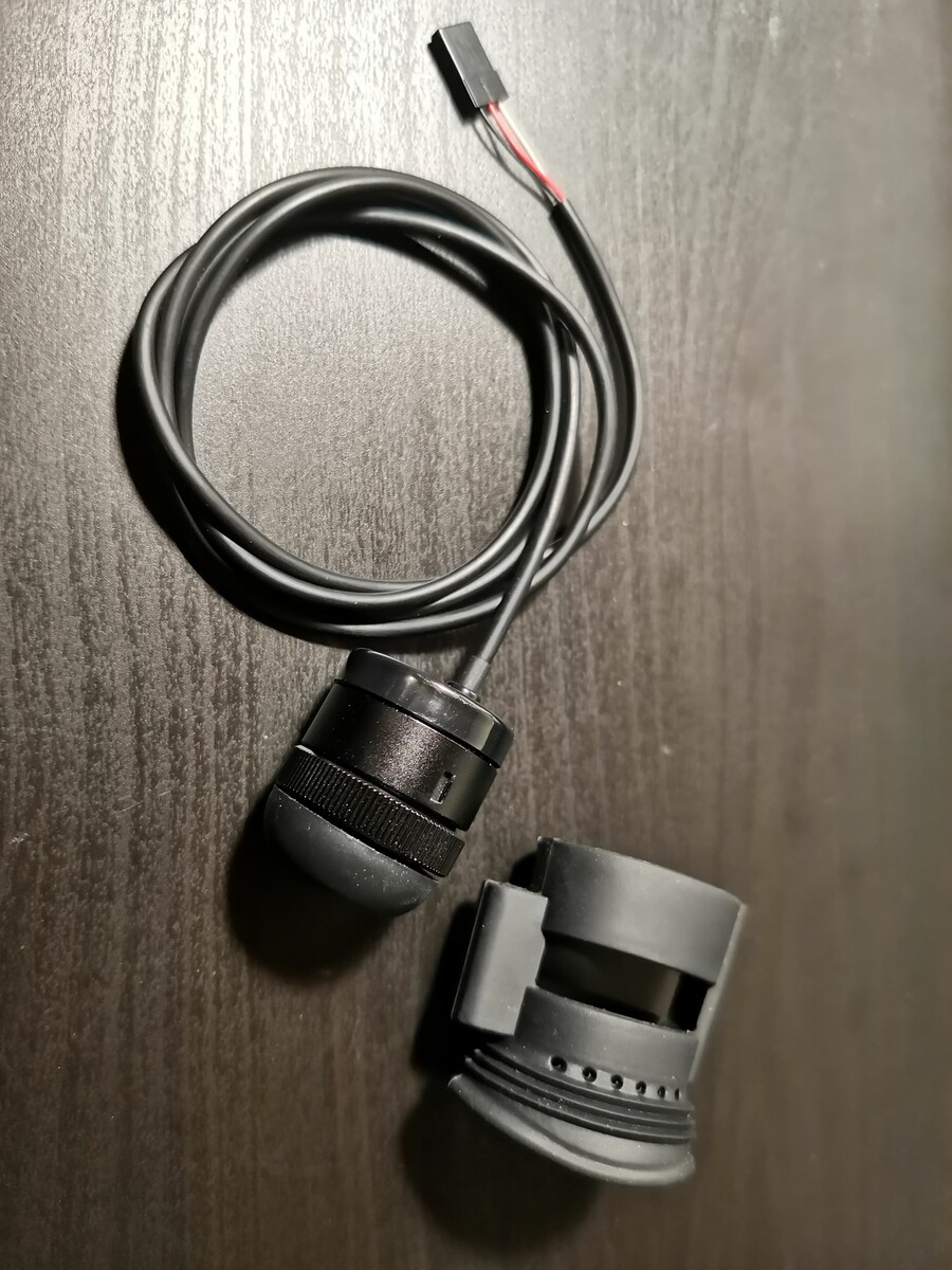 LCD Okular (Sucher, oder wie man das nennt). Ist im Prinzip wie ein Sucher von einer Kamera. Das ist das Teil: https://www.banggood.com/80-inch-Monocular-Mini-Micro-Display-HD-Night-Vision-with-Headband-Goggles-AV-Series-for-FPV-Monitor-p-1239569.html?rmmds=myorder&cur_warehouse=CN Der Stecker ist, wie auf den Bildern zu sehen, geändert worden. Für meinen Anwendungsfall ist aber der FOV von 26 Grad zu wenig gewesen. Bild sieht super aus, ist gestochen scharf. Kleiner Hinweis (steht auch in den Produktbewertungen), die Schärfeneinstellung ist nicht die beste, da das Gewinde etwas locker sitzt (verstellt sich also mal, wenn man Pech hat). Wenn es in dem Gummilichtschutz drin ist, scheint es zu halten. Gezahlt hatte ich mal etwa 70€, würde es für 40€ inkl. Versand hergeben.