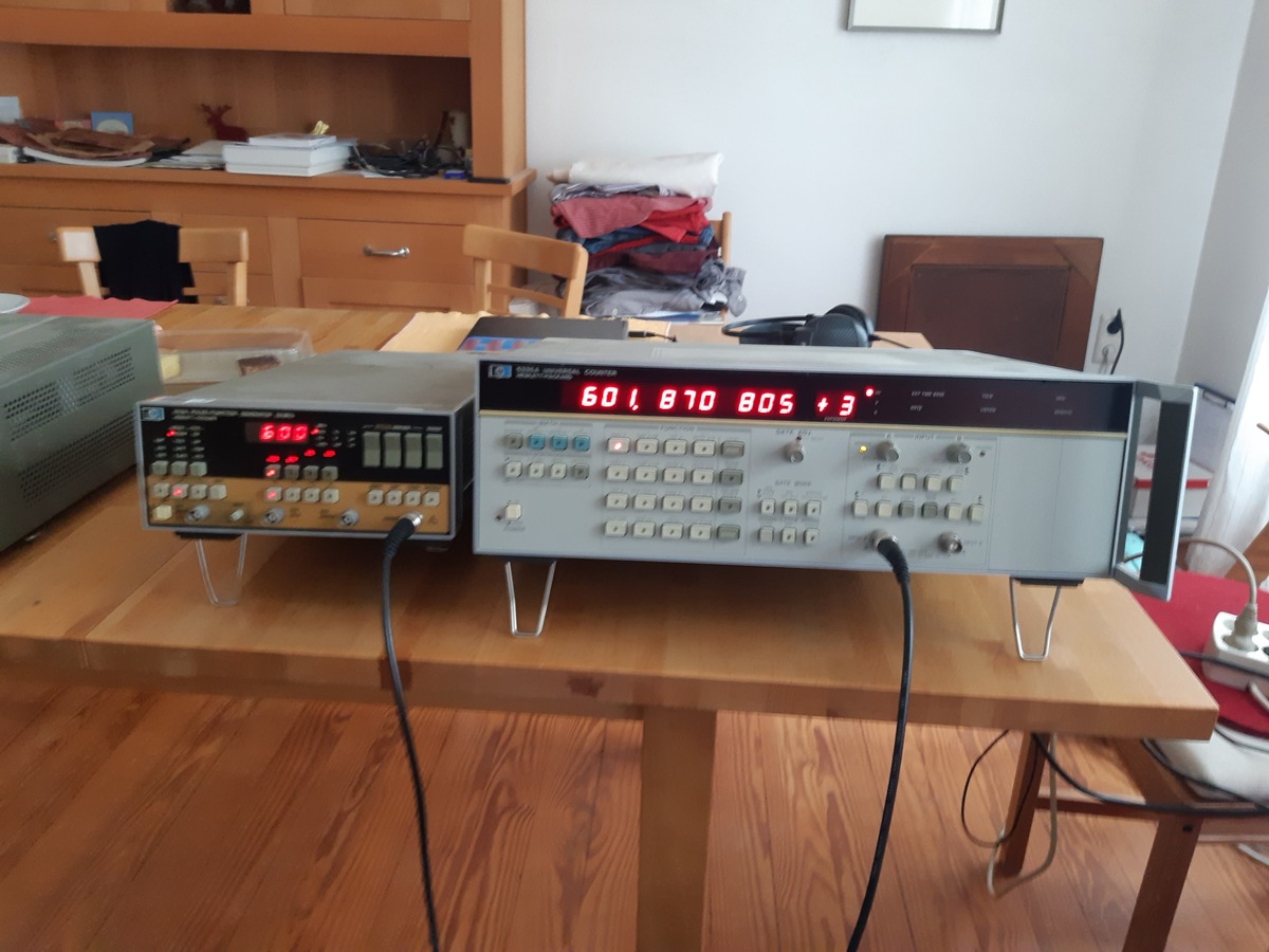 Liebes Forum, ich verkaufe vier ältere HP-Meßgeräte im PLZ-Raum 67xxx. (i) Funktionsgenerator HP8116A, 250,00Euro (ii) Universalzähler (Reziprokzähler) HP5335A, 250,00Euro (iii) Pulsgenerator HP8011A, 50,00Euro (iv) Spektrumanalysator HP3585A, 400,00Euro, dieses Gerät nur an Selbstabholer, denn es wiegt mehr als 32kg. Die Lüfter der Geräte (i) und (ii) wird man nur ungern als Flüsterlüfter bezeichnen. Aber vielleicht hilft ein wenig Lagerfett. Alle vier Geräte sind pfleglich behandelt worden. Für das Versenden der Geräte (i) bis (iii) setze ich jeweils 8,00Euro Versandkosten an. Bezahlung kann via PayPal erfolgen.