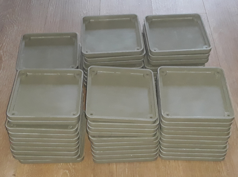 57Stück Quadratisch 130x130 Löcher bei 110x110 Material GFK Tiefe innen 10. Wenn man 2Deckel gegeneinander schraubt/klebt also 20mm Raumhöhe als geschlossenes Gehäuse Schweres Paket, für 20EUR incl Porto zu haben. Kleinere Mengen auch, dann 10 Stück für 10EUR incl Porto. Der Einfachheit halber warte ich erstmal auf einen, der alle nimmt