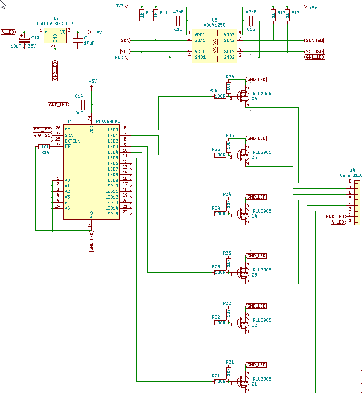Mir erschließen sich die möglichen Gründe für diese Deine Bauteilwahl ehrlich gesagt auch absolut nicht, und das ist ja noch nicht alles. Nun, ich hätte beinahe schon (ohne auf hinz' Post zu achten) praktisch das gleiche geschrieben wie er. Insgesamt frage ich mich nicht nur, wieso Du (ohne so viele PWM-Ch zu benötigen) den PCA aussuchtest (war "LED-(µ-)Controller"=einziges Suchkriterium?), und auch nicht nur, wieso Du I²C miteinbeziehst, sondern schon auch, was diese LL Fets da machen sollen. (Sind die nur da, um zu zeigen "so nicht"?) Worum geht es Dir (sonst) noch - hier scheinen Infos zu fehlen oder etwas schwer bzw. miß- verstdl. dargelegt zu sein?