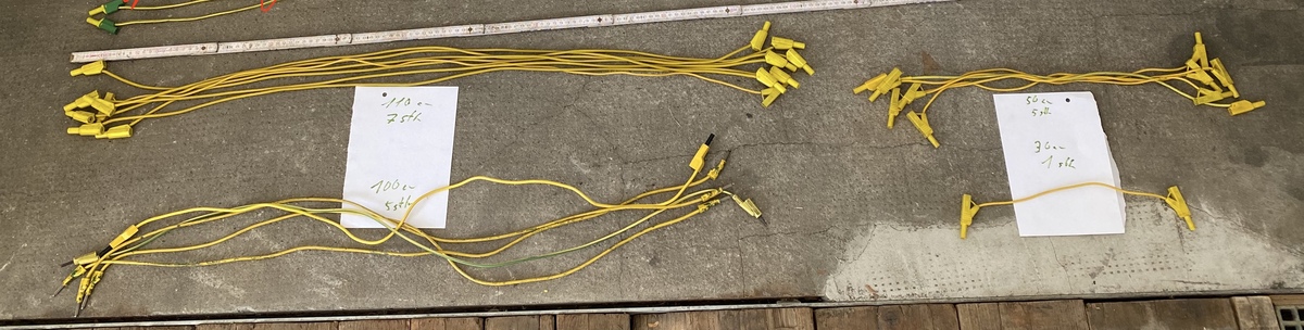 Was noch zum Verkauf steht: Messleitungen 60cm 10€ für 10Stück 100cm 15€ für 10Stück Messleitungen blau, rot, gelb, grün und lila (Bilder) Netzgerät Philips 80€ (nein für 30€ verkaufe ich es nicht) Netzgerät 2 - 20€ 16 AEG GTg 11s Positionsschalter 30€ 13 Endschalter Bernstein und ähnlich 20€ AEG Microverter - 80€