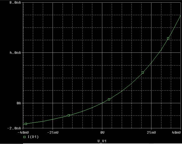 Ich habe jetzt die Erklärung, weshalb Schottky-Dioden - zumindest ohne Vorspannung - zur Detektion völlig ungeeignet sind: Es ist der für Siliziumdioden typische aberwitzig niedrige Sperrstrom! Im Bereich um den Nulldurchgang muss sich gemäß der Formel Is * (e^-x - 1) der Strom von (hohen) positiven Werten auf -Is, also einen winzigen negativen Wert ändern. Und damit ist bei den uns interessierenden geringen Spannungen < 100mV der fließende Strom extrem gering. Ich habe vormittags eine HP-2800 gemessen, was unterhalb von etwa 100mV und bei negativen Spannungen gar nicht mehr möglich war, weil mein Strommesser mit 25µA Vollausschlag unter 0.5µA zu ungenau ist, man kann ja nur schätzen, und mit 3.3kOhm die Messung bereits beeinflusst, und das Millivoltmeter mit 10MOhm schon mehr als 90% des Stroms für sich beansprucht. Ich stelle hier die Kennlinie vor, die sich gemäß der SPICE-Parameter im Datenblatt ergibt, und die meine Messungen recht gut widerspiegelt. Ich habe zB bei +70mV einen Strom von 27nA, das ergibt sich zumindest anhand des Vorwiderstandes von 90MOhm und einer Batteriespannung von 3.2 Volt. Zwischen 20 und 50mV ist der dynamische Widerstand (Spannungs- gegen Stromänderung) etwa 12MOhm! Damit liegen die umgesetzten Leistungen im Bereich unter 0.1nW, da ist nichts mehr was man hören könnte, es nützt auch nichts, den Widerstand zu transformieren. Ich sehe noch 2 Möglichkeiten der Anpassung: die Spannungsüberhöhung am Schwingkreis ausnutzen, also dort bereits auf eine höhere Spannung transformieren, bei über 1Megohm ist der Schwingkreis ja praktisch nicht belastet, oder mittels Vorspannung in einen günstigeren Bereich der Kennlinie zu kommen. Oberhalb von 300mV wird das aber wohl nichts werden, weil dann der recht hohe Innenwiderstand von 25 Ohm zum Tragen kommt und die Demodulatoreigenschaft sinkt.