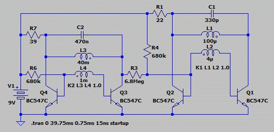 Nochmal AM-Testsender für den Detektor: Wieso sollte ich das Gepfriemel an der vorhandenen Teillösung aufgeben? Ich habe mehrere dieser Module, die Schaltung ist in etwa wie in https://i.stack.imgur.com/l5irt.jpg nur mit einer iduktiven Rückkopplung ähnlich https://sites.google.com/site/anilandro4/_/rsrc/1472779391699/02140-niep-001d/iep-117.jpg - Nur komme ich mit der vorhandenen Spule nicht höher als 350kHz, aber ein Nachbau mit 6 Teilen schwingt schön auf ca. 850-880 kHz. Durch Austauschen der Schwingkreiswicklung gegen die Hochspannungswicklung und Parallelschalten eines 2.7µF-MKF komme ich auf 1550Hz zunter, aber das ist mir noch zu piepsig, ich bevorzuge etwas niedrigere Töne. Aber in der Kiste liegen noch andere Spulen/Drosseln, da wird was passendes dabei sein. Erst wenn das Ende der Einbahnstraße erreicht ist kehre ich um, momentan sind da noch 2 Abzweigungen, hinter die ich noch nicht geguckt habe ;-) Ich will ja keinen Prototypen für die Serienfertigung, sondern ein Einzelstück aus sowenig (vorhandenen) Bauteilen, das den Anforderungen genügt. Mit Betonung auf "genügt", nicht labormäßig geprüften DIN-Normen! Sprich, sowohl HF als auch NF sollen visuell am Oszilloskop nach Sinus aussehen und im Sony ICF-SW7600 auf der Grundfrequenz sauber, auf der 2./3. Oberwelle kaum oder garnicht hörbar sein. Und da hat der Gegentaktoszillator viele Vorteile.