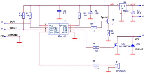 Ich habe mal als Demo kapazitive und resistive Sensortasten in einem Workshop bearbeitet, "zu Fuß", nur mit einem ADC: http://uracoli.nongnu.org/clt2012/index.html Die resistiven brauchten schon mal feuchte Finger, die kapazitiven funktionierten gut, sobald man das Gerätchen in der Hand hält (d.h. genügend "Gegengewicht" bietet). In dieser Hinsicht bietet es sich für die Morsetaste an, dass du eine große Platte aus FR4 als Handauflage baust und die Fingerflächen dann ganz vorn anbringst. Sowas hatte ich vor Jahrzehnten mal resistiv mit klassischen CD4000 aufgebaut, hat aber nicht sonderlich gut funktioniert. Angesichts der Erfahrung mit den genannten Tic-Tac-Toe-Gerätchen werden kapazitive vermutlich besser funktionieren. Vergiss aber nicht, das Ganze am Ende auch unter realen "HF-verseuchten" Bedingungen zu testen. Es wäre nicht dier erste Elbug, die bei leicht fehlangepasster Antenne dann ein Problem bekommt …