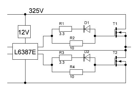 Servus, Wir nutzen für einen DC/DC offline-230V converter eine MOSFET-Halbbrücke mit zwei STW20N65M5. Als Treiber verwenden wir einen L6387E mit 12V Versorgung bei 50kHz Schaltfrequenz. Wie im Bild gezeigt sind zwei Pfade für Laden und Entladen der Gates vorgesehen. Beim Temperaturtest von 45°C Umgebungstemperatur hat sich D1, R1 und der Treiber verabschiedet. Im Datenblatt ist ein maximaler Treiberstrom von 400mA source und 650mA sink angegeben, in Theorie zieht der Treiber jedoch bei Abschaltung circa 12V/3ohm, also um die 4A peak-Strom. Ist die Belastung für den Treiber hier zu hoch?