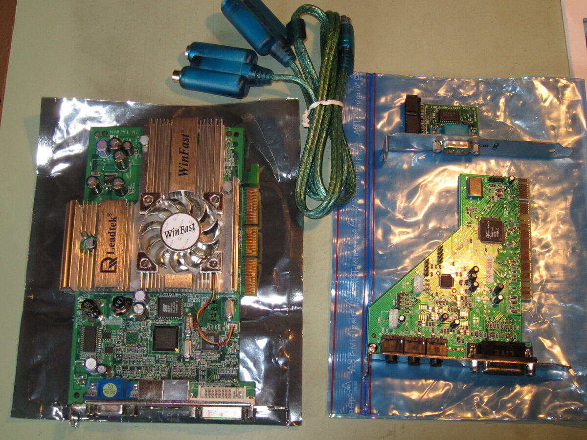 Falls da noch jemand was mit anfangen kann: * Leadtek WinFast Gforce4 Ti4800 SE mit 128 MB und AGP8. Incl der Kabelpeitsche für TV in/out * Soundkarte PCI-Bus mit ForteMedia FM801-AU Chip. * Slotblech mit RS232 Buchse und SN75185 Pegelwandler, zum Nachrüsten eines zweiten COM-Ports für HP-Compaq-PCs Einzeln oder bevorzugt komplett gegen aufgerundetes Porto abzugeben. Anfragen bitte ausschließlich per pn oder per Mail an i_forum99@0box.eu , und die Mailadresse für die Rückantwort nicht vergessen! pn funktioniert, ich bin hier nicht mit web/gmx registriert.