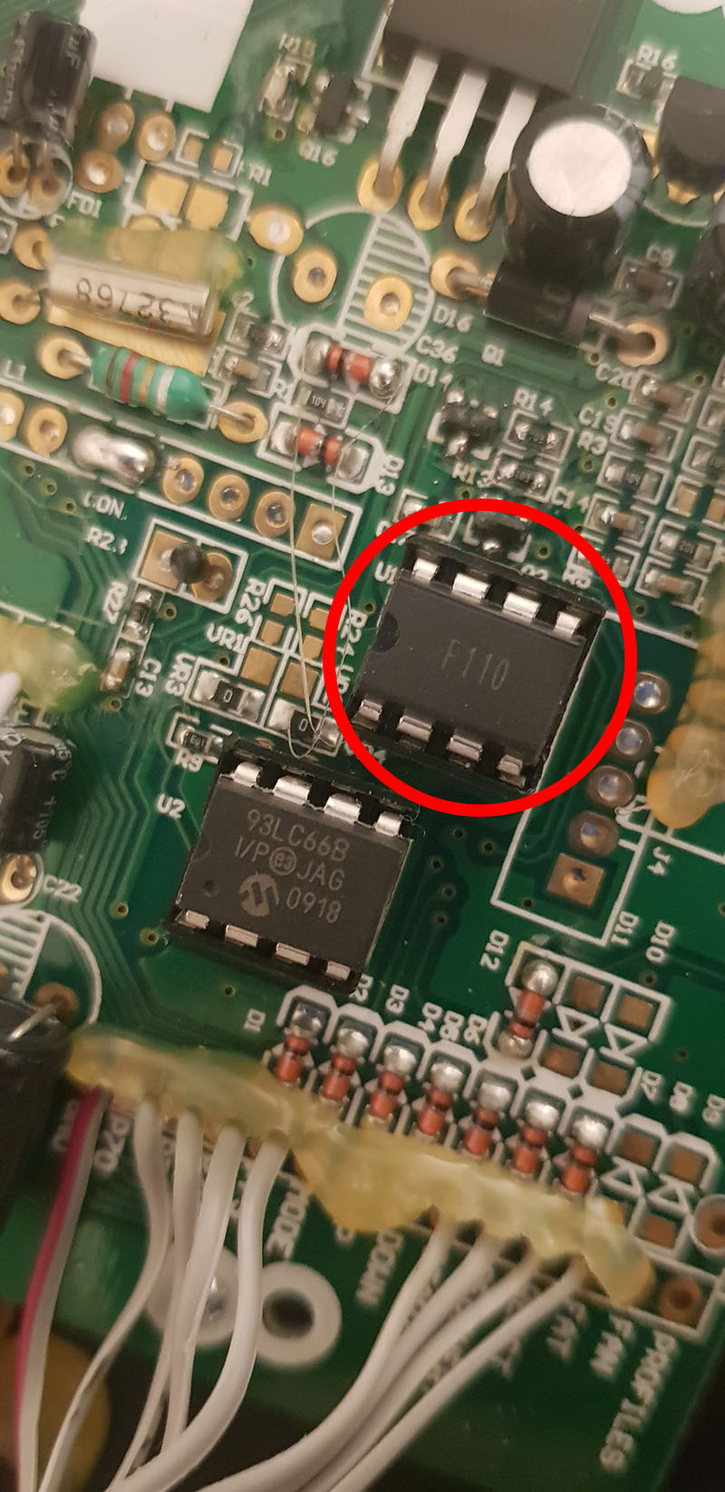 Robert schrieb: > ich versuche das Gerät zu verstehen Nachdem schon ein "Oldschool"-EEPROM (93C66) zu sichten ist wird es sich dicht daneben (F110) nicht um noch ein EEPROM oder Flash- EPROM handeln sondern eher um einen Mikrocontroller.