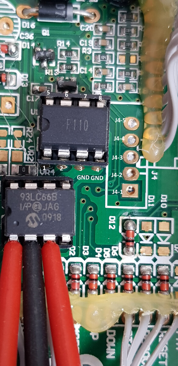 also, pins 3,4 und J4-2 sind GND pin 7 ist mit J4-4 verbunden pin 6 ist mit j4-5 verbunden Chip ist nicht kaputt, sondern ich versuche das Gerät zu verstehen um es eventuel automatisch zu steuern.